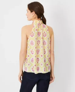 Flounce sleeves add an alluring lift to this shirred neck top, flourished in fresh florals. Shirred jewel neck. Flounce ruffle sleeves with shirred shoulders. Back keyhole with button closure.
