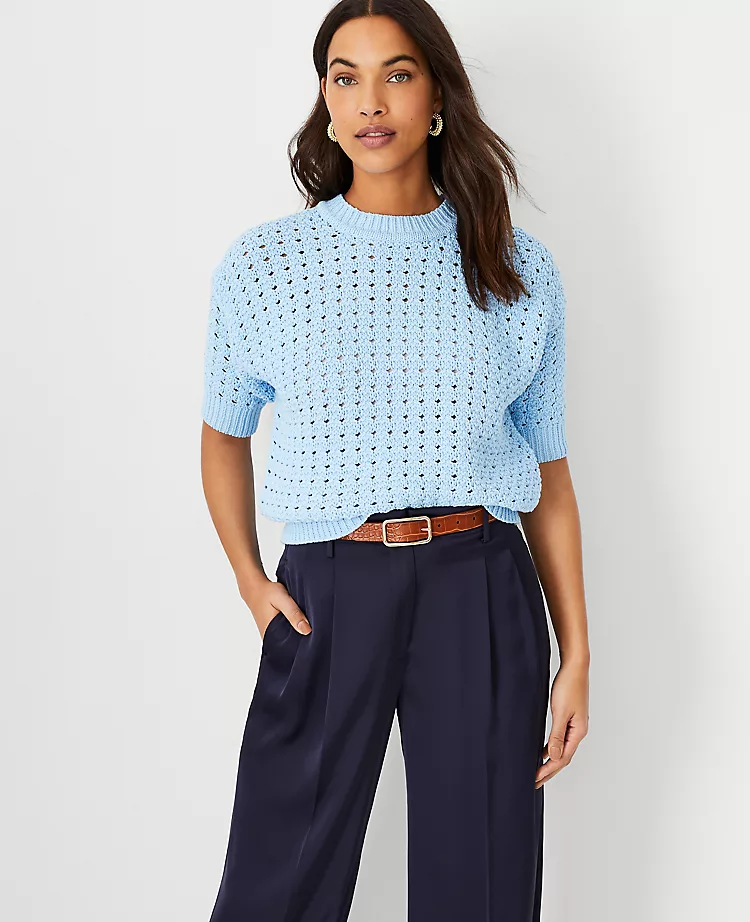 Our geo stitch sweater is an easy silhouette that’s perfect for everyday. Crew neck. Elbow sleeves. Drop shoulders. Ribbed neckline, cuffs and hem.