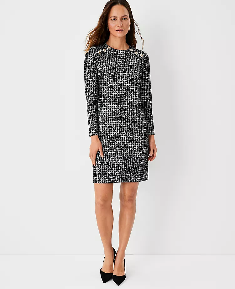 Plaid Shoulder Button Shift Dress