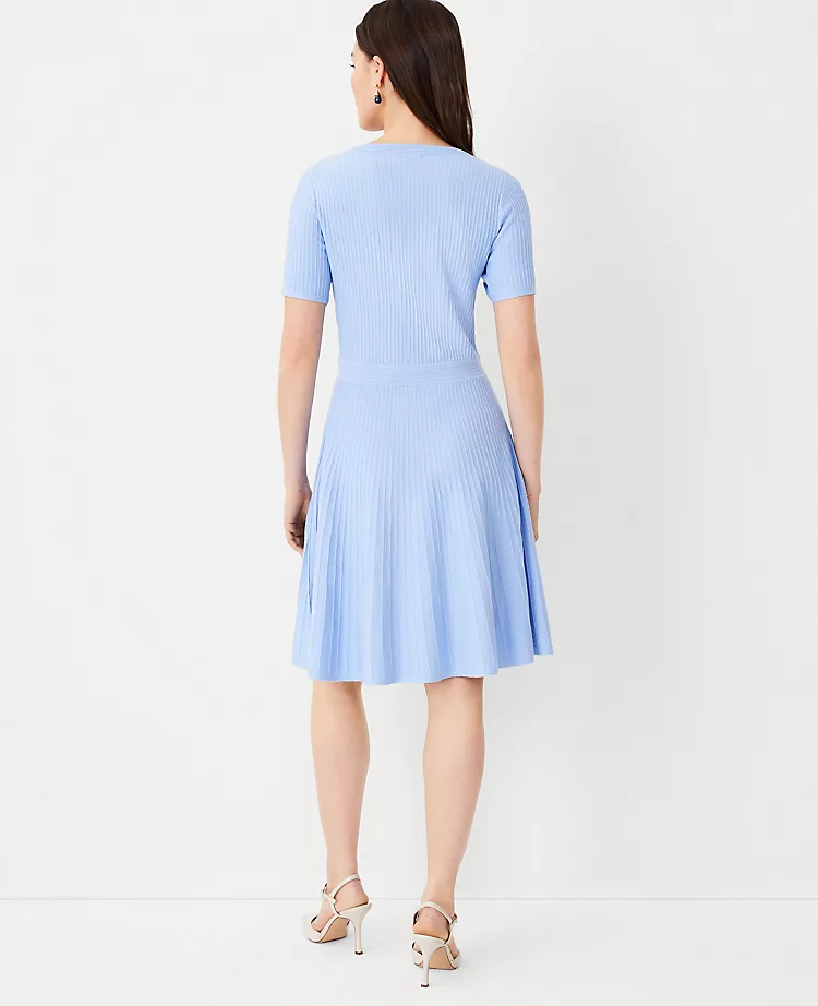 In a flattering ribbed stitch, our lightly flared sweater dress is one of the easiest pieces you’ll own. Boatneck. Short sleeves.