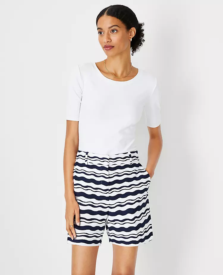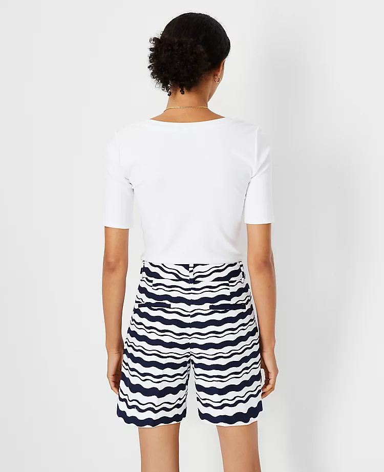 The perfect balance of casual and sophisticated, our metro short has a versatile length you’ll love. Front zip with double hook-and-bar closure. Belt loops. Front off-seam pockets. Back welt pockets.
